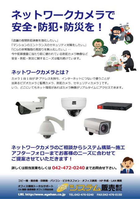 システム販売ではカメラ(防犯カメラ)も多数取り扱っています。