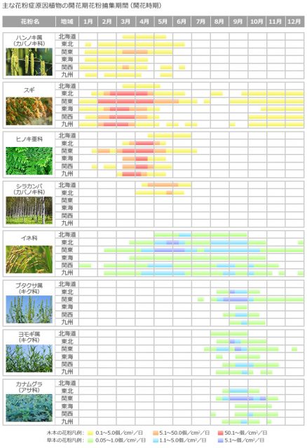 ↑この表を見ると、花粉は一年中飛んでるんですねっ!!