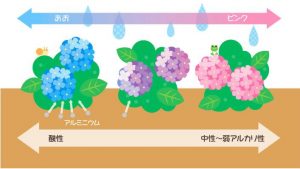 紫陽花の育つ土が酸性の場合、紫陽花の花は青くなり、アルカリ性だと赤くなるんです。