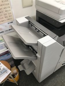 サドルフィニシャーはホチキス止めが出来る上、中綴じも出来るので楽なんです。