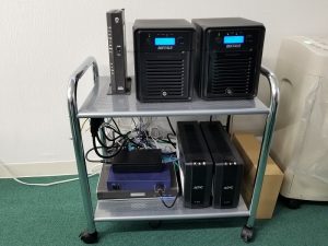 まだ後で棚が入る予定ですがネットやNAS等の機材一式をまとめるために取り急ぎ小型のワゴンを用意しました。