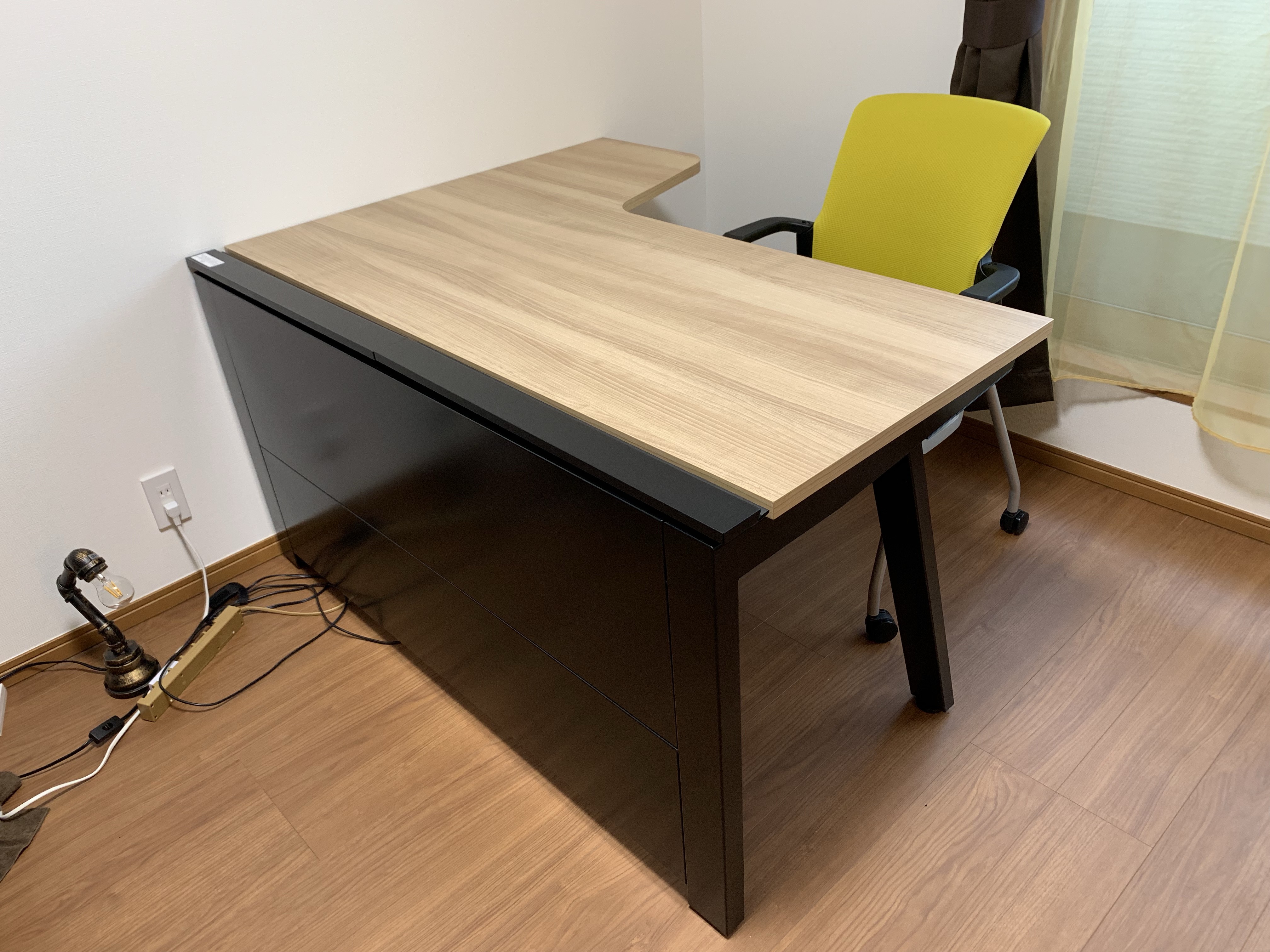 う~ん素敵。 PLUSのオフィスファニチャーでオススメ出来るのがこの天板が選べるところ。今回新色のLW(ライトウォルナット)