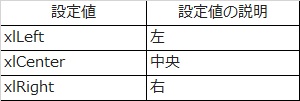 HorizontalAlignmentは、セル内の値の表示位置(水平方向)を設定します。