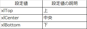 VerticalAlignmentは、セル内の値の表示位置(垂直方向)を指定します。