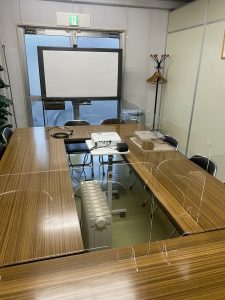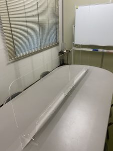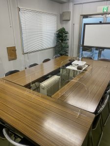 会議室は飛散防止アクリルプレートで仕切りを作らせて頂き、 加湿空気清浄機を置かせて頂きました。