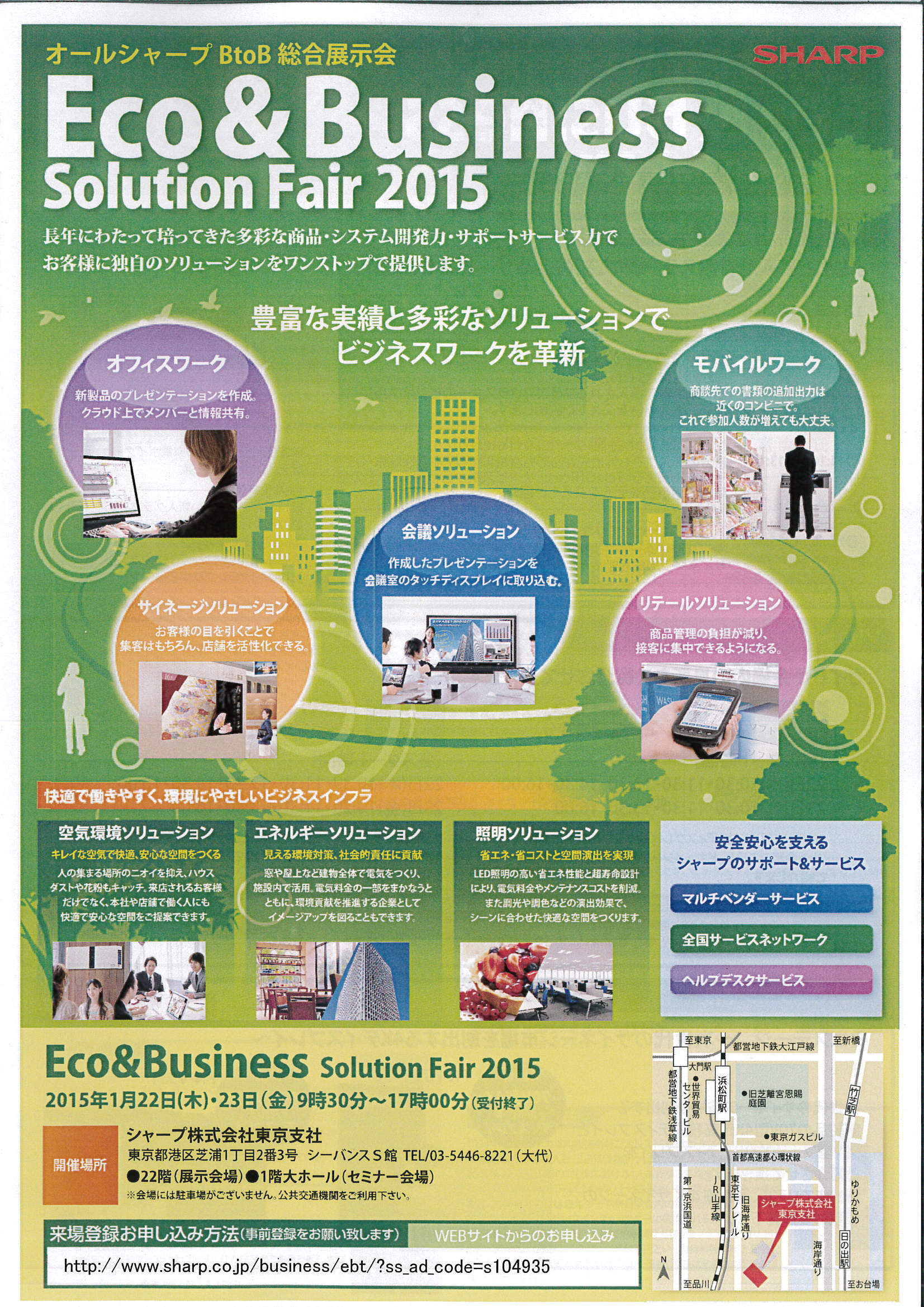 「シャープ Eco&Business Solution Fair 2015」のご案内です。