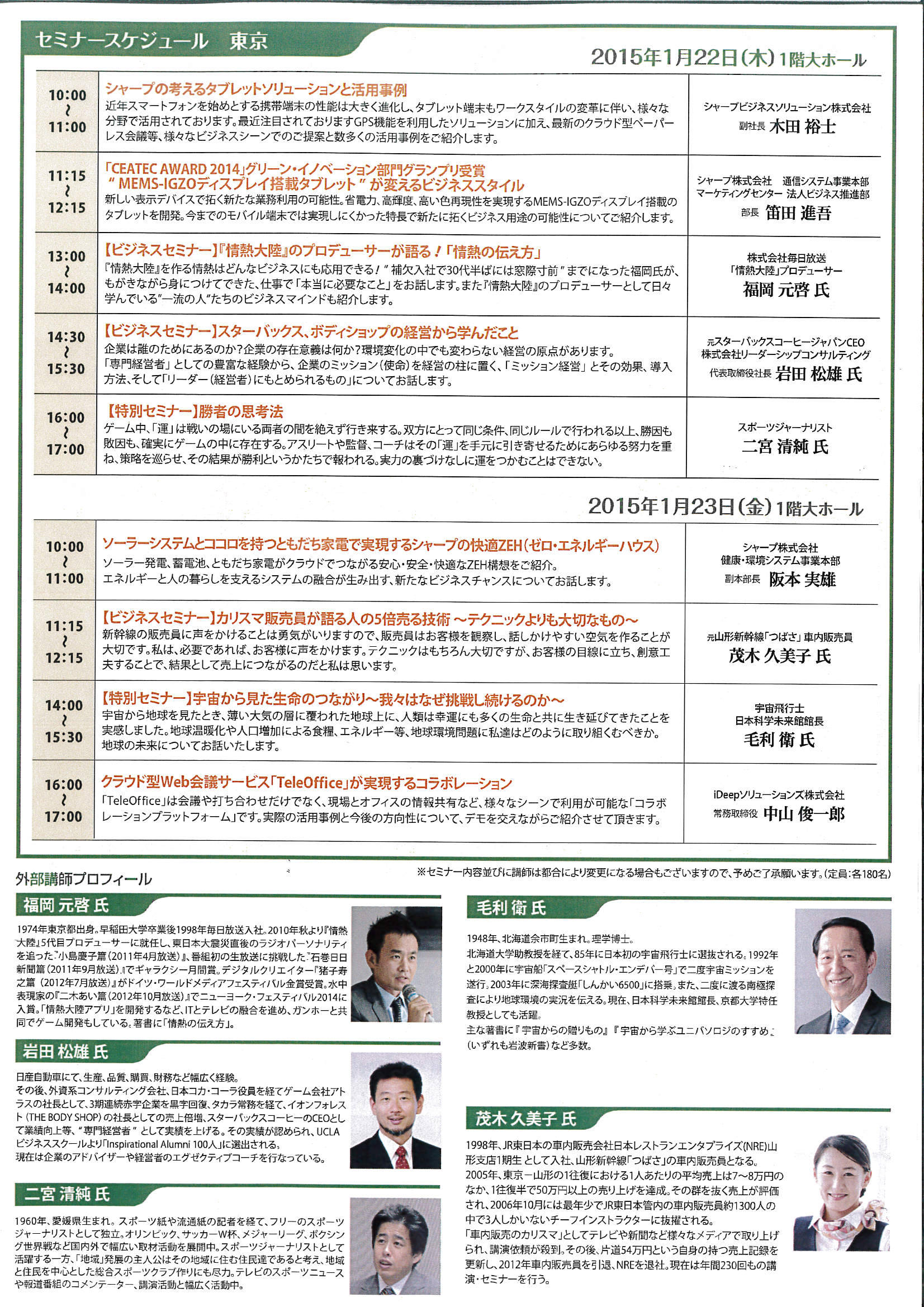 日時:2015年1月22日(木)・23日(金)9時30分~17時00分(受付終了)