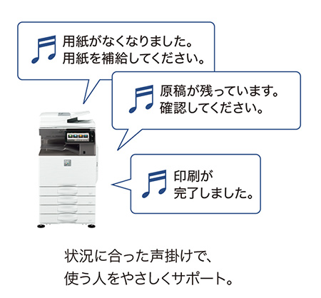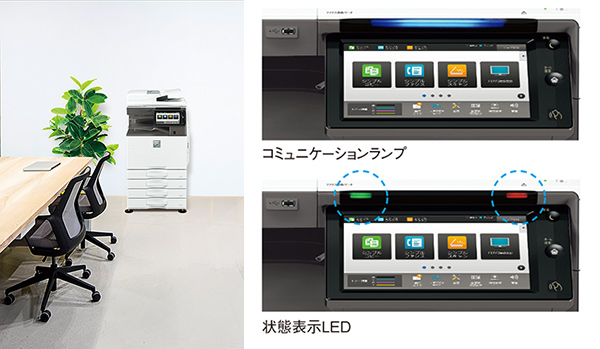 また音声だけではなく、LEDランプでもコピー機の状況を
