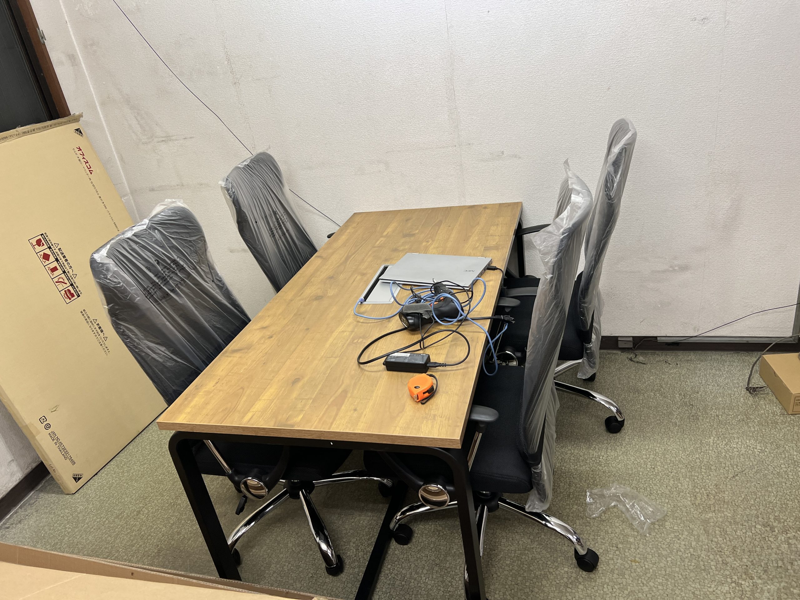 複合機と什器あるだけで事務所が出来てきたなといった感じになりました。