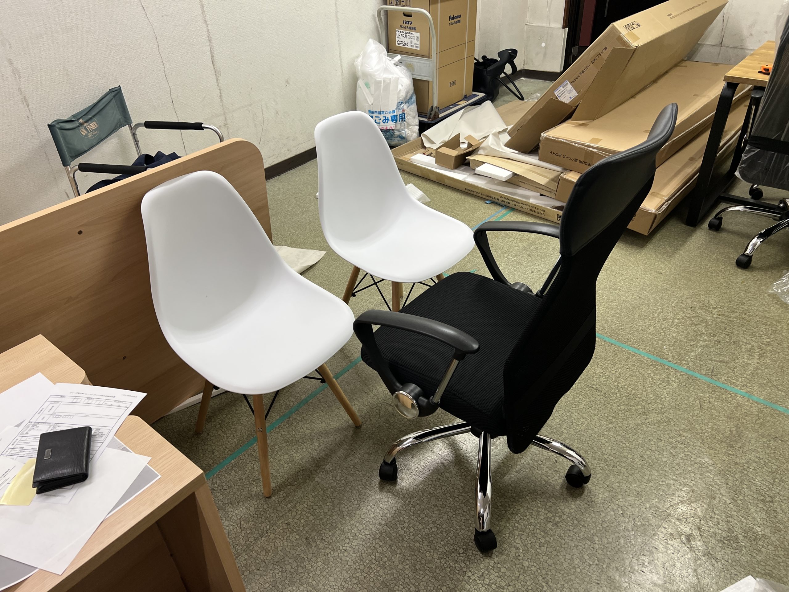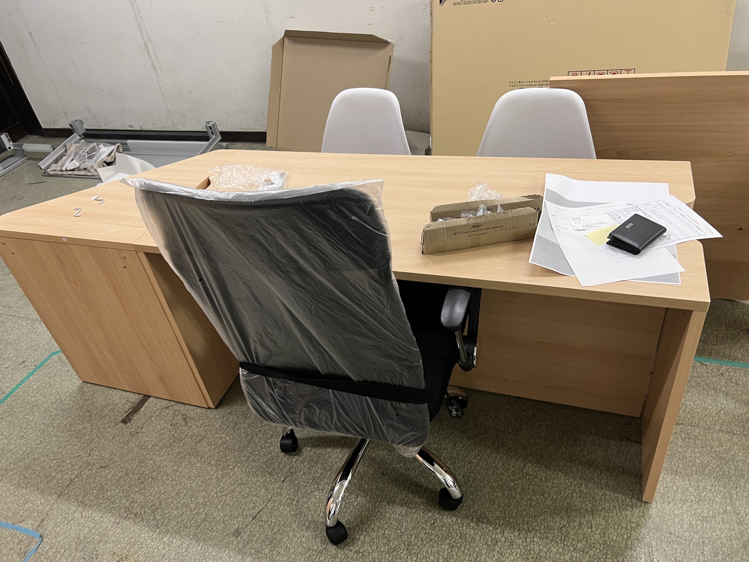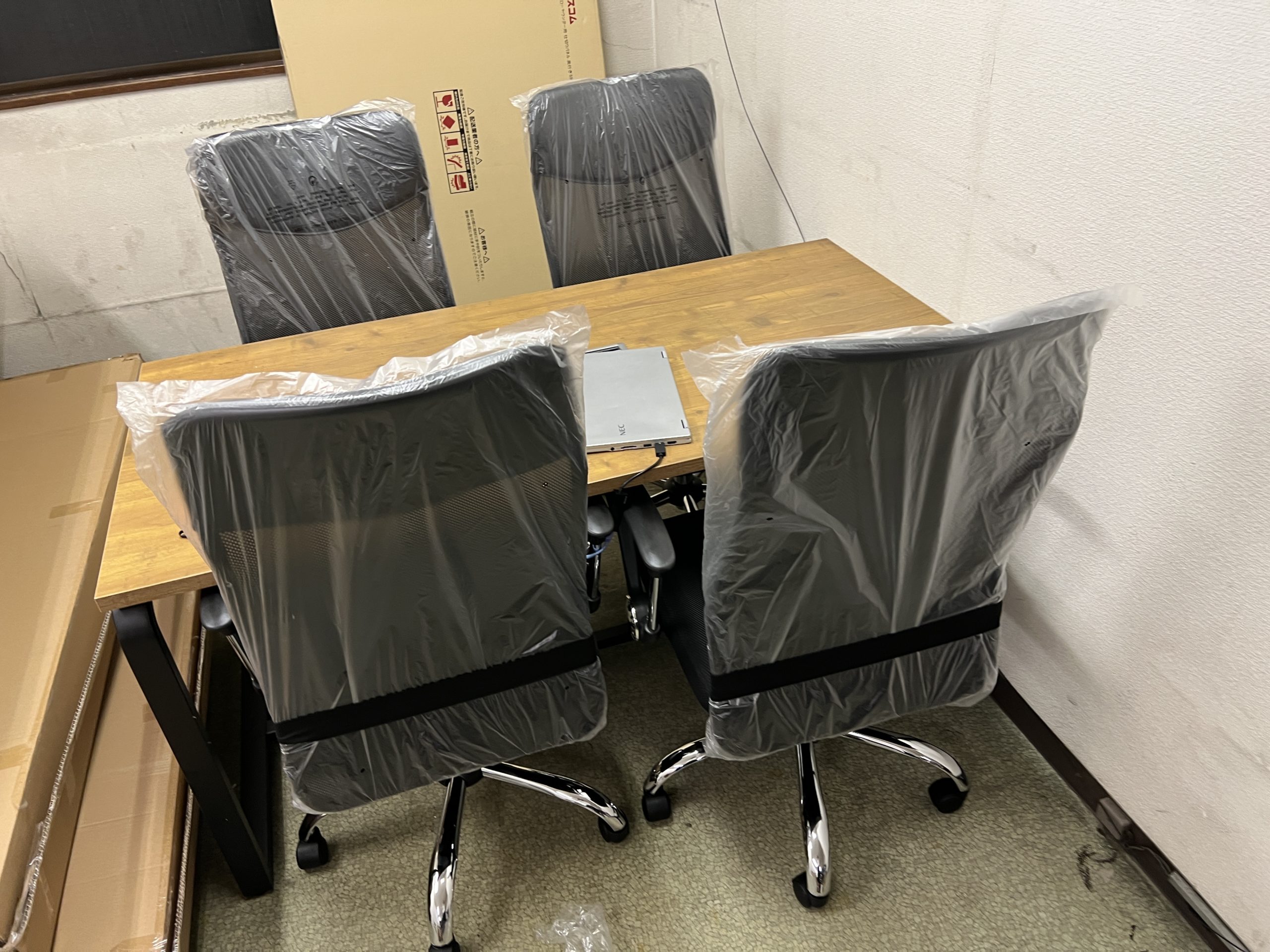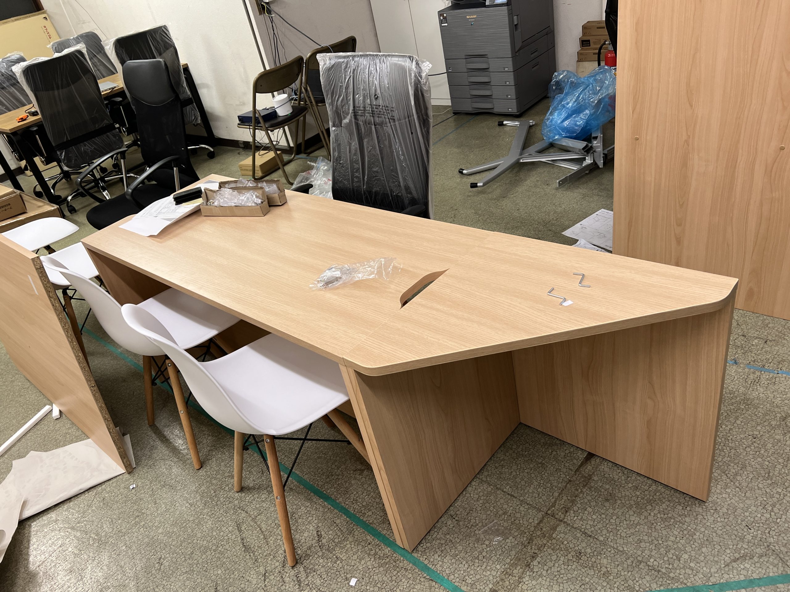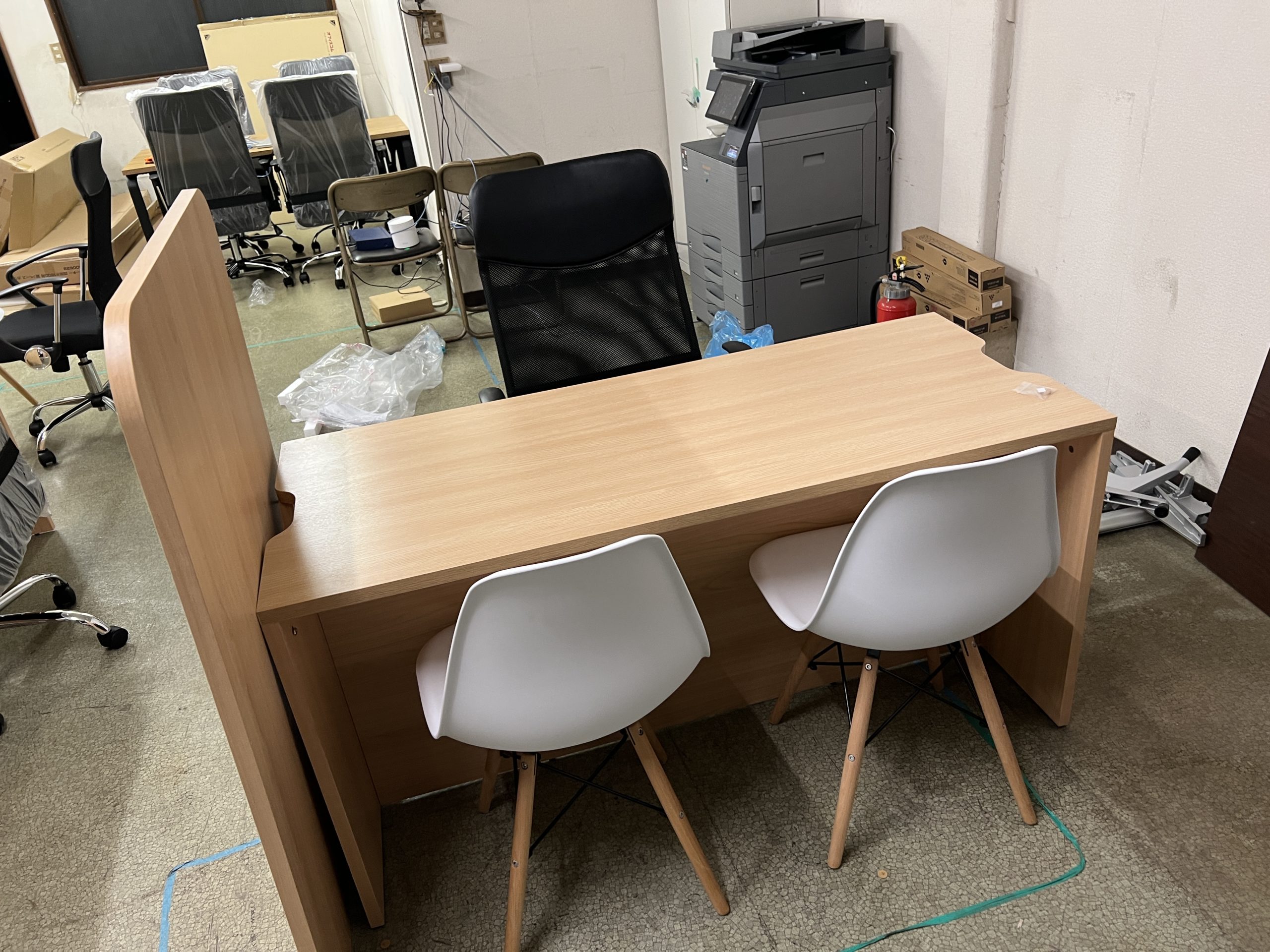 複合機と什器あるだけで事務所が出来てきたなといった感じになりました。
