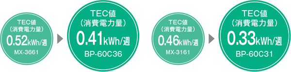 - ※TEC値とは「Typical Electricity Consumption」の略。国際エネルギースタープログラムで定められた測定方法による数値です。