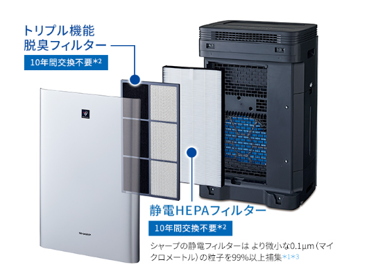 10年間の連続使用が可能なフィルターを使用しておりますので