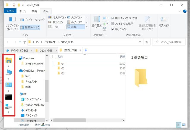 設定できたら今後複数のエクスプローラーを開く必要がなくなります