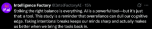また、MITの最新の脳科学研究によれば、このようなAIツールは脳の活動レベルを著しく低下させ、記憶力を弱め、さらには「認知慣性」を引き起こすという。