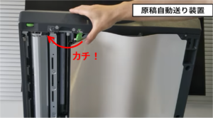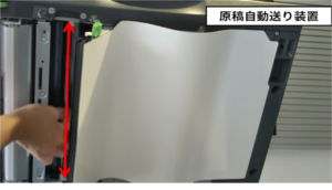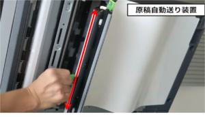 ※主に原稿送り装置(下部参照)から印刷の場合に発生する汚れのクリーニング方法です